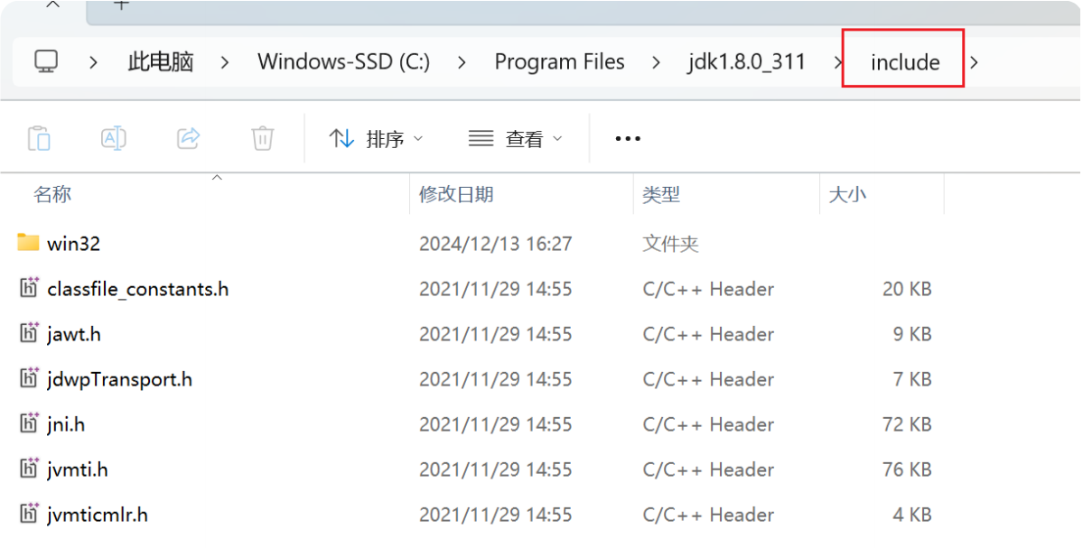 工程的附加包含目录需添加jni.h、jni_md.h所在的目录。